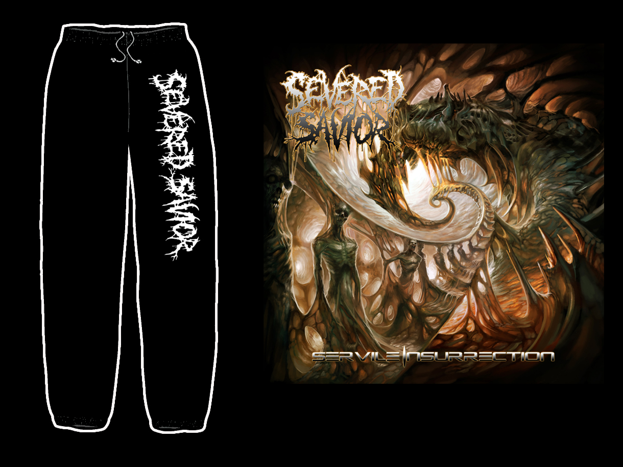 Think you're a Severed Savior fan? Then fucking prove it with the Severed Savior sweatpants, pussy!   Sure to keep your warm on those cold, bitter winter nights.  Remember the early 90's blue grape catalogs and how they sold Deicide, Suffocation, Obituary, etc sweats?  Well, we are bringing it back.... get them while you can these will be limited !!!
